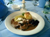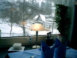 私がノルデナウにくるもうひとつの理由が、なかなかここのレストランは、うまい!ことにある。 今日の日替わり定食なりを注文したが、3コース、新じゃがのスープとメインがこれなのだが、赤鹿のワインソース、これに、デザートがシャーベットだったが、きれいに盛り付けがしてあった。 これで、14ユーロは、お手ごろ価格ではなかろうか?